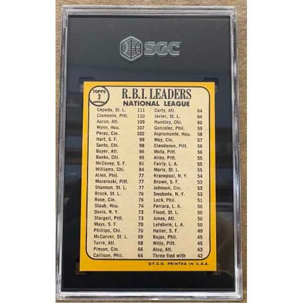 1968 Topps #3 NL RBI Leaders Aaron Clemente Cepeda SGC 6