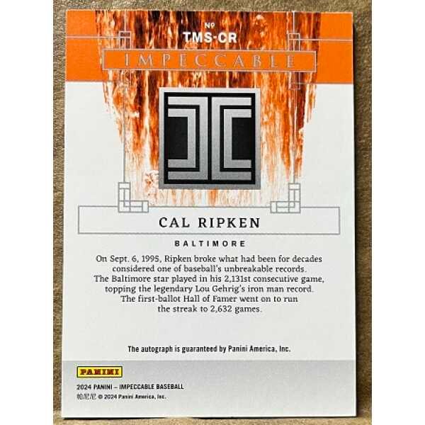 2024 Panini Impeccable Timeless Moments Signatures Holo Gold Cal Ripken /10